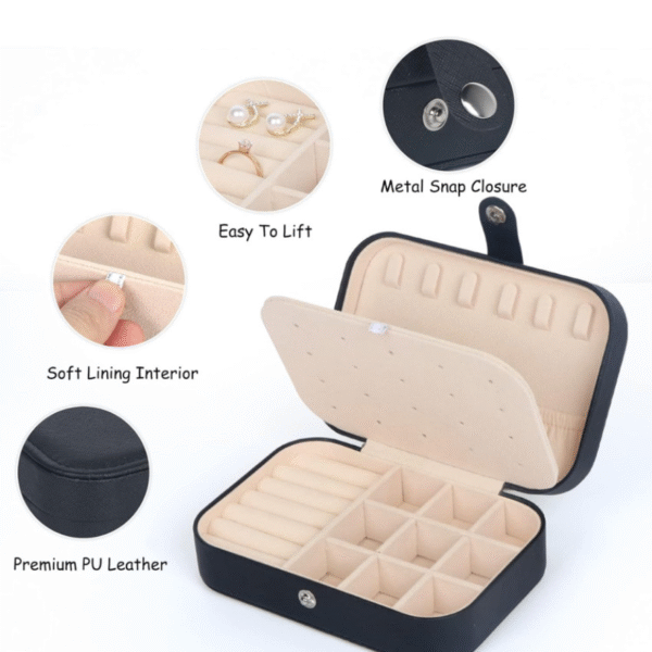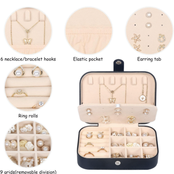 Made with a durable PU leather exterior and a soft lining interior, this jewelry box offers double-layered protection. It’s waterproof, long-lasting, and keeps your accessories well-organized while showcasing them beautifully.Measuring 18 x 10 x 5 cm (7.08 x 3.93 x 1.96 in), this lightweight jewelry organizer fits easily in your handbag or luggage, making it ideal for travel, weekend getaways, or business trips. Its elegant design also doubles as a stylish addition to your dresser or home decor.